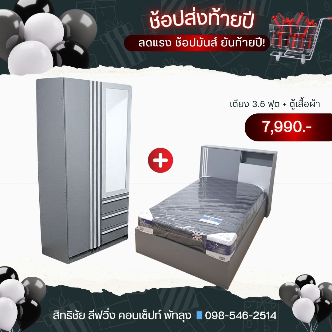 ชุดห้องนอน 4in1 ((เตียง3.5 ฟุต+ตู้ผ้า)