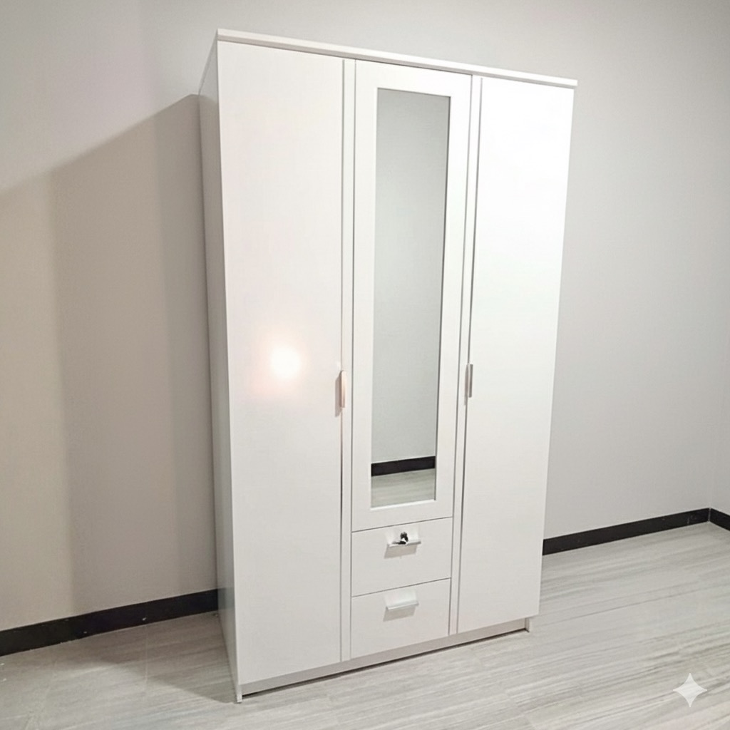 ตู้เสื้อผ้าเหล็ก 3 บานเปิด KUM-05 (มีกุญแจล๊อค)